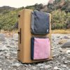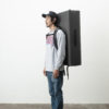 一般的にシューズ等のクライミングギアはボルダリングマットに挟み込んで持っていくのが主流ですが、マット背面にバッグが脱着できる事により、片付けや移動がスムーズになります。